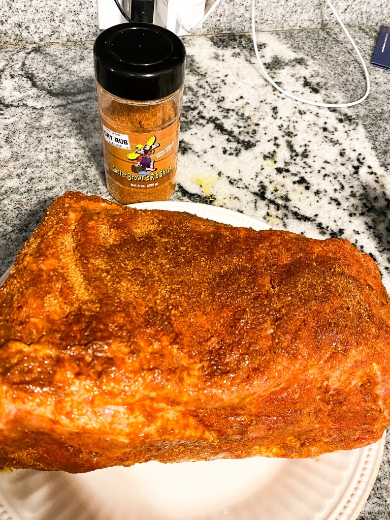 The night before the cook, unwrap the meat and prepare your seasonings. This is where you can be creative with how you will enjoy the pork. For this smoke, I used a dry rub from a local BBQ place in Jacksonville, AL. This is a smoky, tangy seasoning that marries well with the pork, in my opinion. Cover the entire pork shoulder with mustard prior to using the rub. Don’t worry, you won’t be able to taste the mustard in the finished product, but it gives the dry rub a nice base to stick to overnight. Once you have covered the meat in mustard and your seasonings of choice stick it back in the fridge until the next morning.