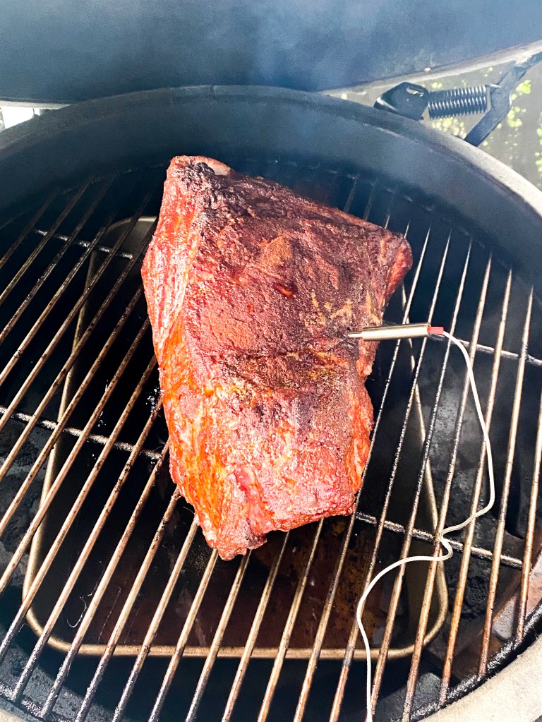 In my experience, it is best to stay with a pork shoulder in the 8lb range. Something 10 lbs or larger typically does not cook evenly and anything smaller just isn’t enough. If frozen, be sure to schedule ample time to allow the pork to thaw in the refrigerator for at least 3 days.